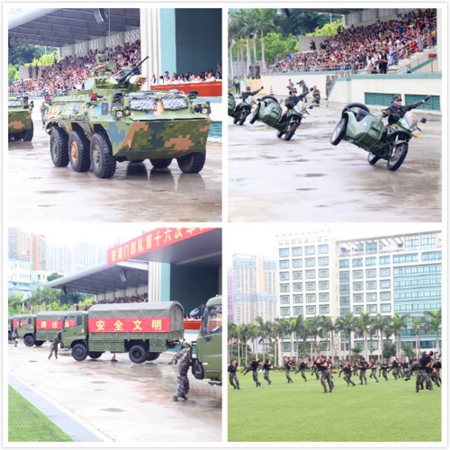 军营开放日活动于上午10时正式开始,驻军进行升国旗仪式,以及多个军事科目演示,包括军乐仪仗队演奏曲目、特种兵散打团体操、女兵驾驶摩托车表演、反恐行动实战演练等九个项目。当中新增的军事体育竞赛项目,由三组官兵进行翻滚轮胎、搬运弹药箱,乃至推动17吨重装甲车等项目。
